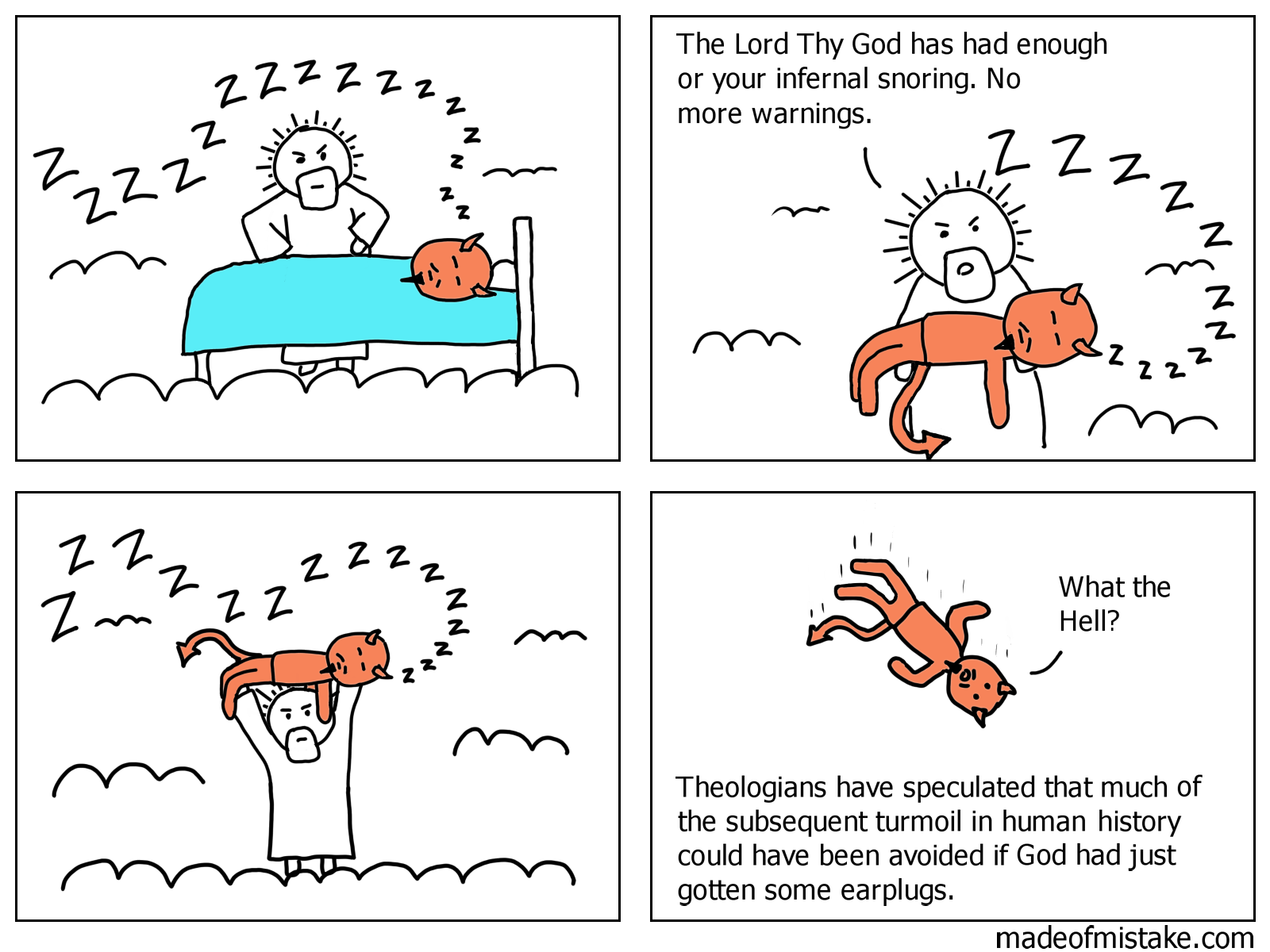 When the Lord cast out the Devil from heaven he said, 'Yea, shall I give you a sign of the evil ones in your midst. Ye shall know them by the discordant din that shall issue forth from their nose. And the Lord said, maybe try losing weight or something. I've heard that helps.'
